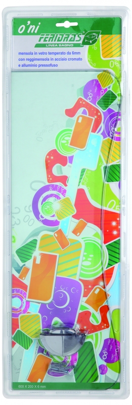 Mensola onda in vetro temperato e reggimensola in acciaio 60 x 15 cm 339007 Feridras.