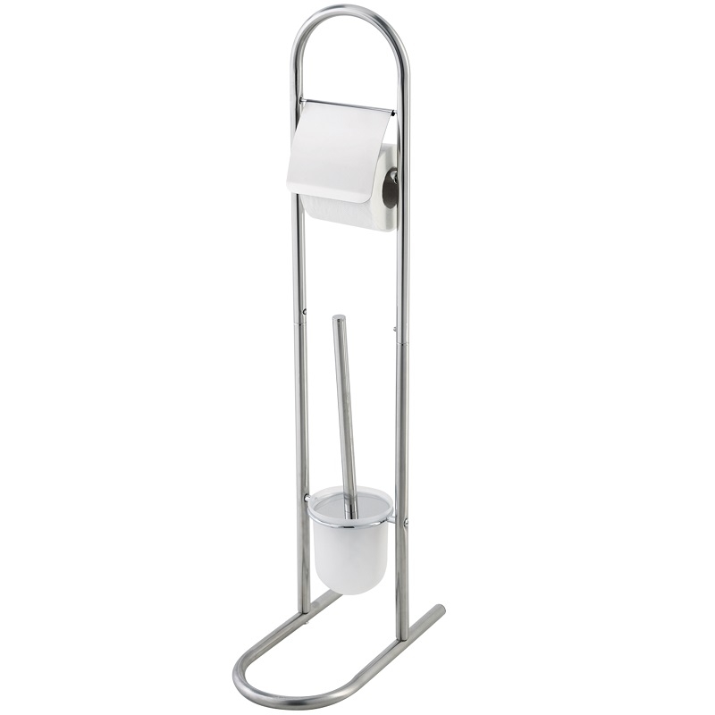 Piantana portarotolo e portascopino in acciaio cromato 151036