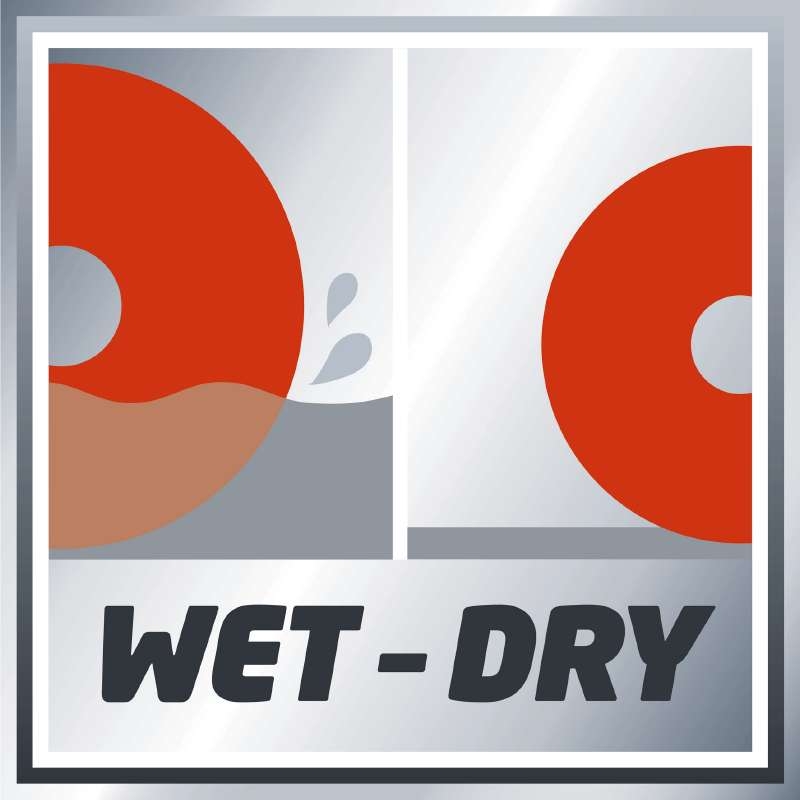 Smerigliatrice da banco combinata TC-WD 200-150 Einhell utilizzabile a secco e ad acqua, dotata di protezione anti-scintille e 4 piedini antiscivolo.