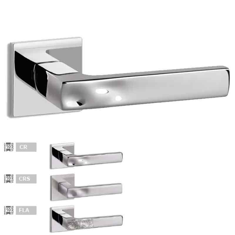 Maniglie per porte interne Sand R6 bocchetta quadrata Ento, design elegante e raffinato, disponibile in diverse finiture con foro Yale o Patent.